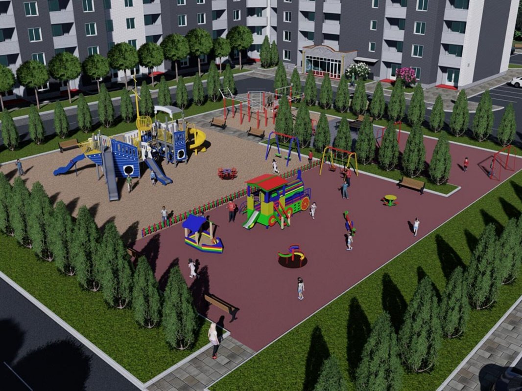 На території ЖК: дитячі та спортивні майданчики, охайні двори.